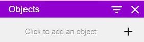 • On the Objects panel on the right, click + to add an object.
